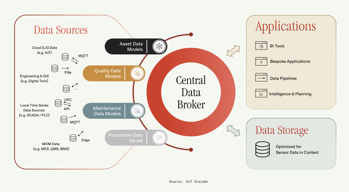 Despite these advancements, data in industrial environments remains highly fragmented, limiting its ability to power AI-driven automation. Traditional manufacturing data architecture follows a hierarchical model, where information moves through multiple layers before becoming actionable: